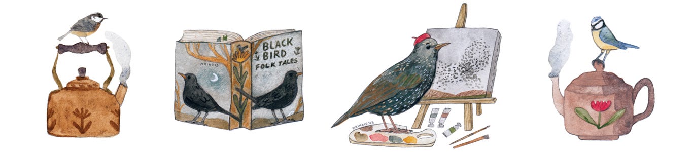 On 5th of December I will be updating my website with 4 new sticker designs. I recently got nice coupon code to use from my sticker supplier so I made new designs. I had absolute joy create more bird inspired stickers. New designs include coal tit teapot, blue tit teapot, murmuration starting artist, blackbird folk tales. Murmuration starling artist may be my favourite, but I love them all. They will be up on my website on 5th of December 4PM UK time.