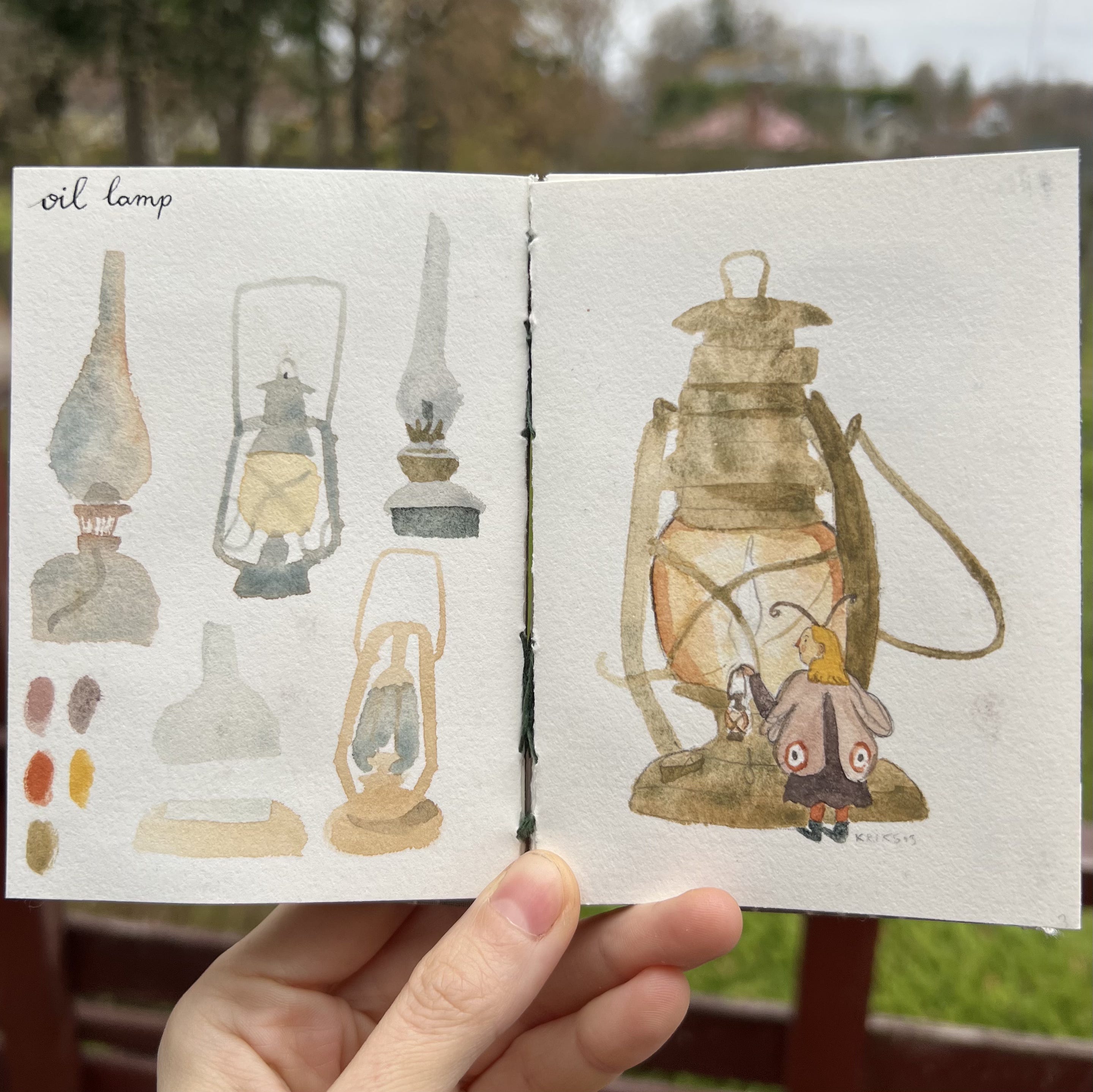 And I also did host a drawing challenge through October called Calmtober. Here is little spread featuring Moth girl and Oil lamp.